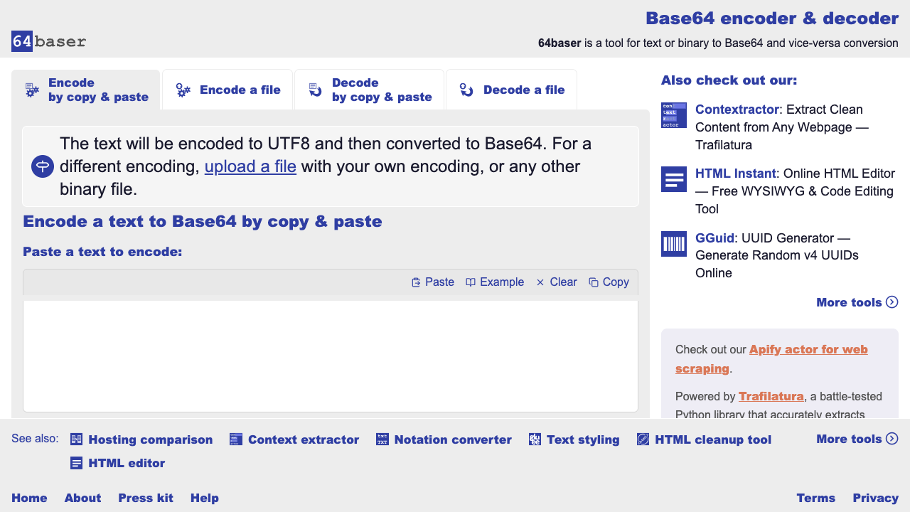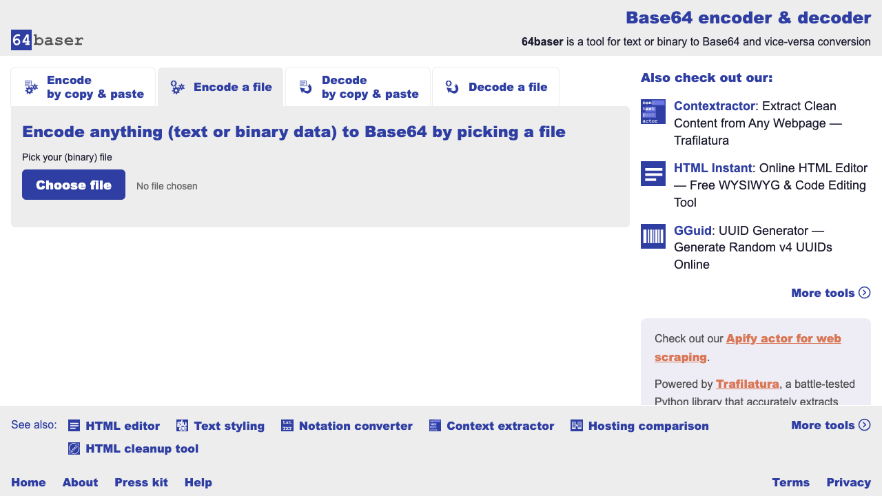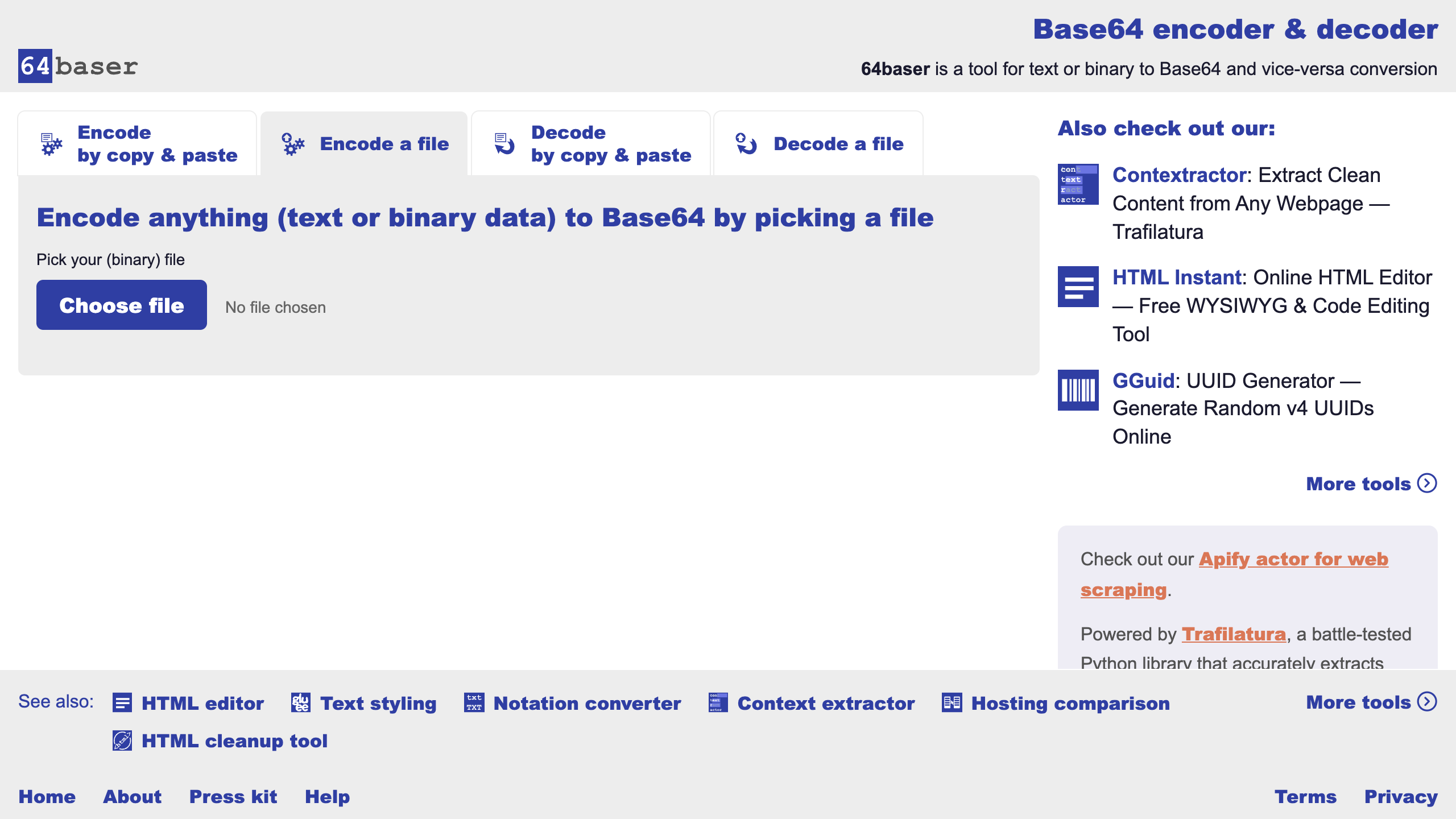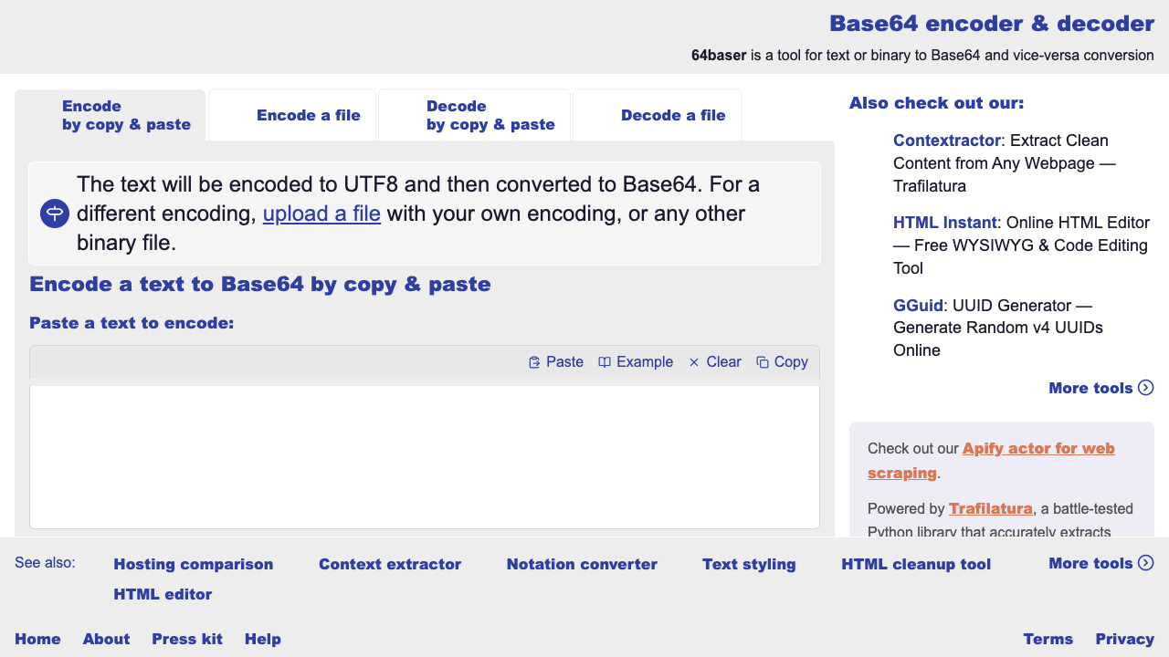 64baser is a tool for text or binary to Base64 and vice-versa conversion